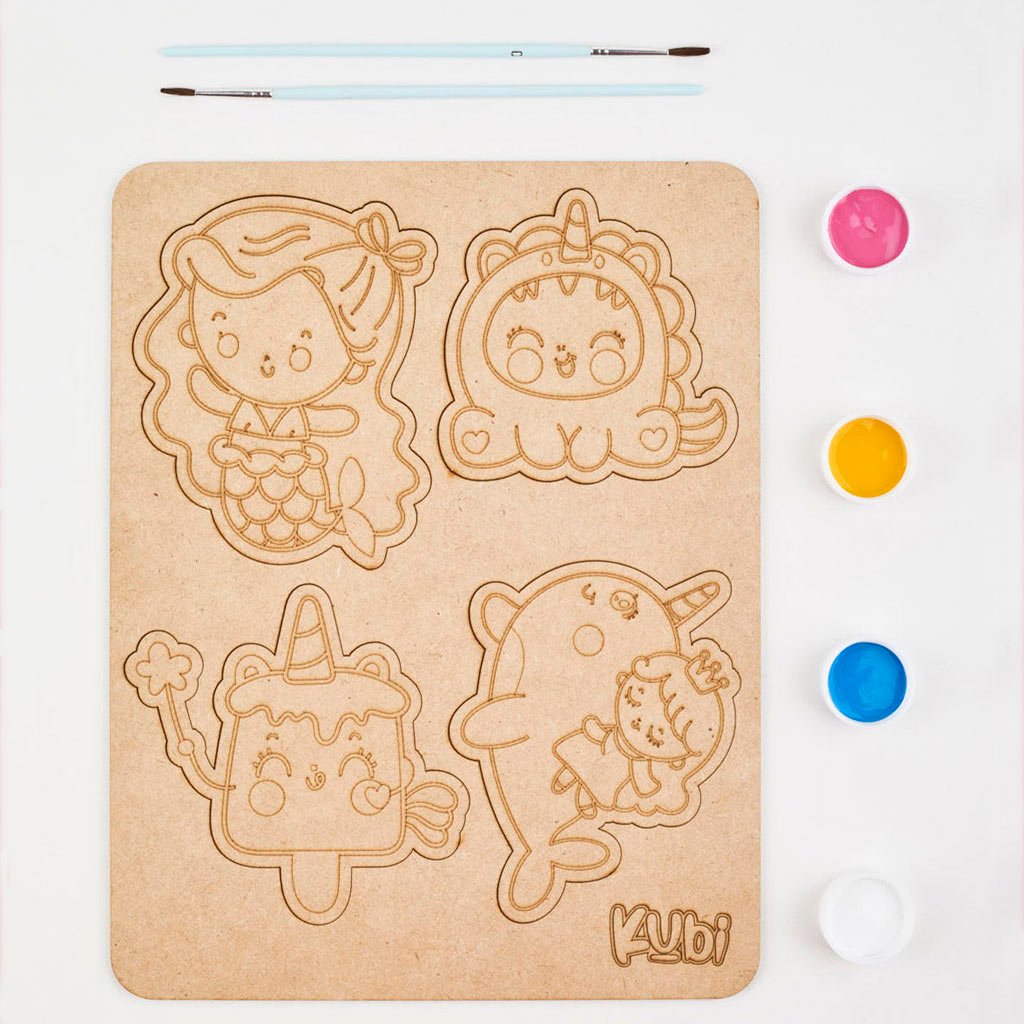 Increíble set de dibujos alusivos al mar, cuenta con pinturas para que tu peque los pinte con los pinceles que van incluidos en el paquete.
